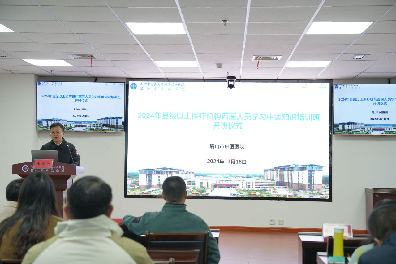 为贯彻落实《中华人民共和国中医药法》关于中西医并重的卫生工作方针,促进中西医临床医务工作的融合与协调,进一步加强我市县级及以上医疗机构西医人员系统学习中医药知识的能力,提高中医药的服务水平,11月18日,我院在岷东院区举行了2024年县级及以上医疗机构西医人员学习中医知识培训班(以下简称“西学中”培训班)开班仪式。开班仪式由我院副院长王振兴主持,来自全市县级以上医疗机构52名学员和授课专家参加了开班仪式。