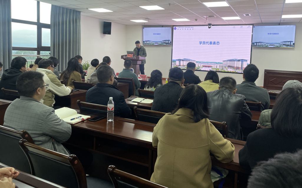 骨科五副主任彭如辉作为学员代表表态发言。他表示一定遵守培训秩序,严格按照大纲培训要求学习,加强对中医药知识的学习,学成后将中医思维运用到临床工作中,提高临床疗效,以满足群众日益增长的中医药健康需求。