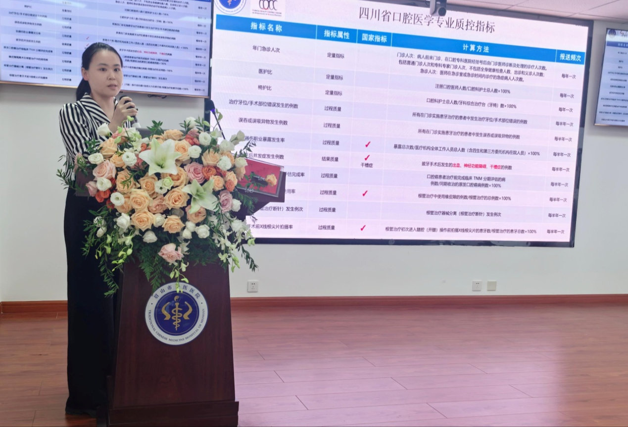 最后,眉山市质控中心秘书侯兰带领参会医务人员深入解读了四川省口腔质控院感方面的相关质控指标,让大家对口腔院感防控有了更深刻的认知。