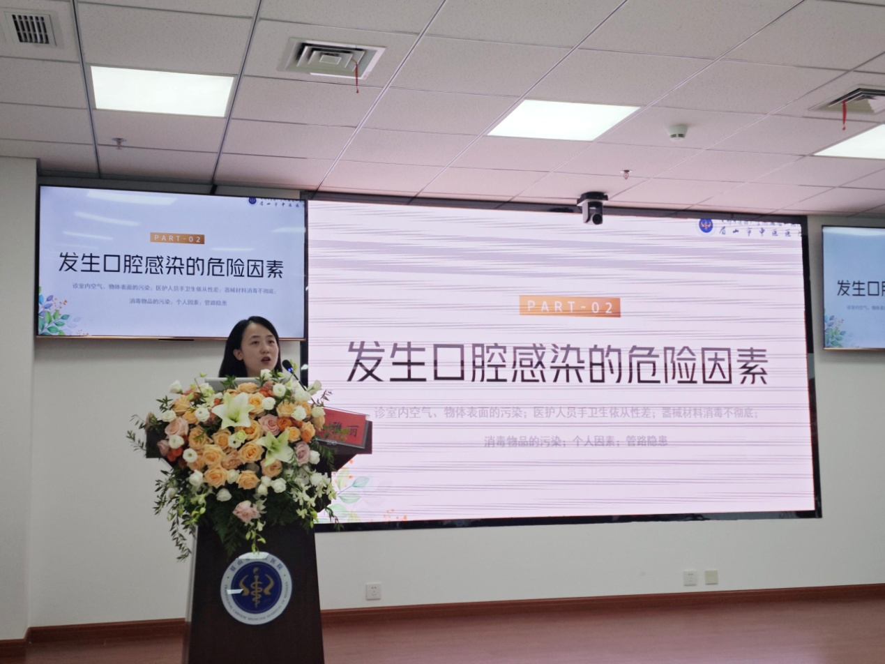 我院口腔科护士长徐雅丽就“基层口腔门诊工作中的感控注意事项”,从日常工作实际出发,从基层口腔日常诊疗工作入手,以临床一线工作为例,多方面讲解了关于口腔日常诊疗工作院感防控重点。