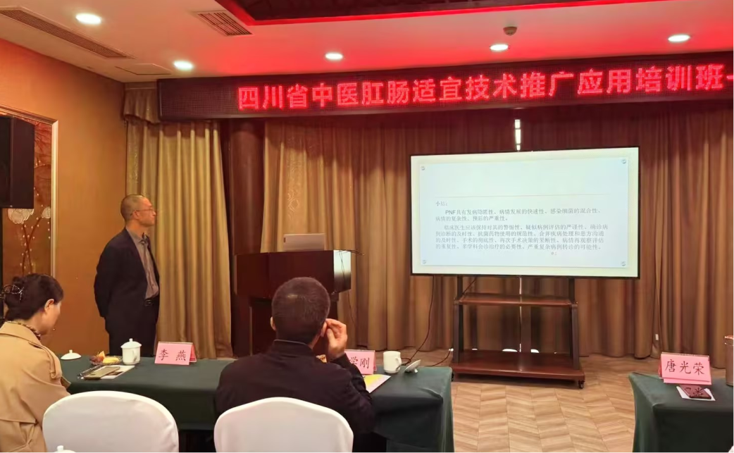 眉山市人民医院中医科主任徐贵安、仁寿县中医医院肛肠科主任彭德,我院肛肠科主任杨界辉、副主任李强分别就“结肠水疗在临床中的应用”“肛周坏死性筋膜炎的专家共识”“婴幼儿‘漏便’的临川验案”“直肠脱垂经会阴入路手术方式的选择策略”等临床诊疗工作进行了精彩的讲解,获得与会人员阵阵掌声。